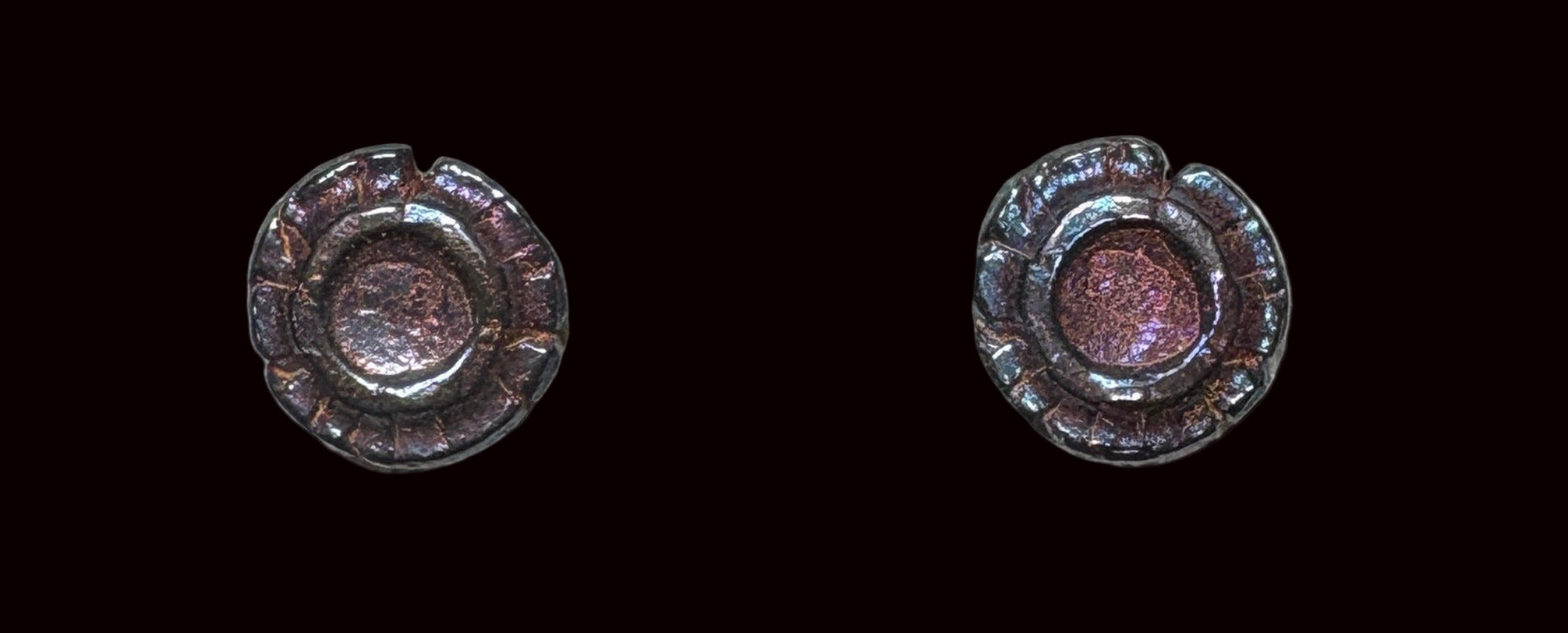Fine Silver (.999) post earrings with a unique patina for added color. Approx. 12mm in diameter.