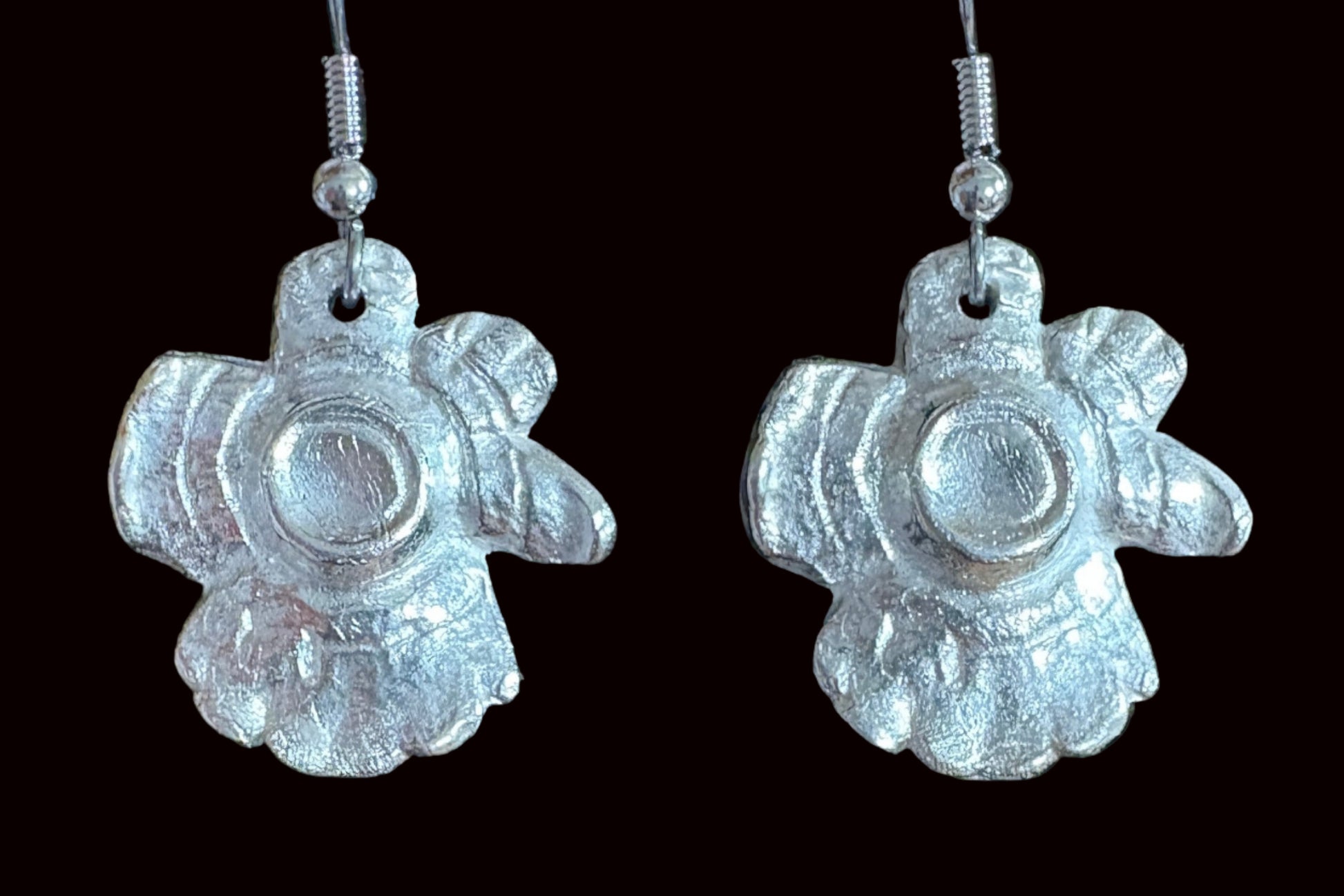 Fine Silver (.999) dangle earrings. Approximately 18mm x 23mm.