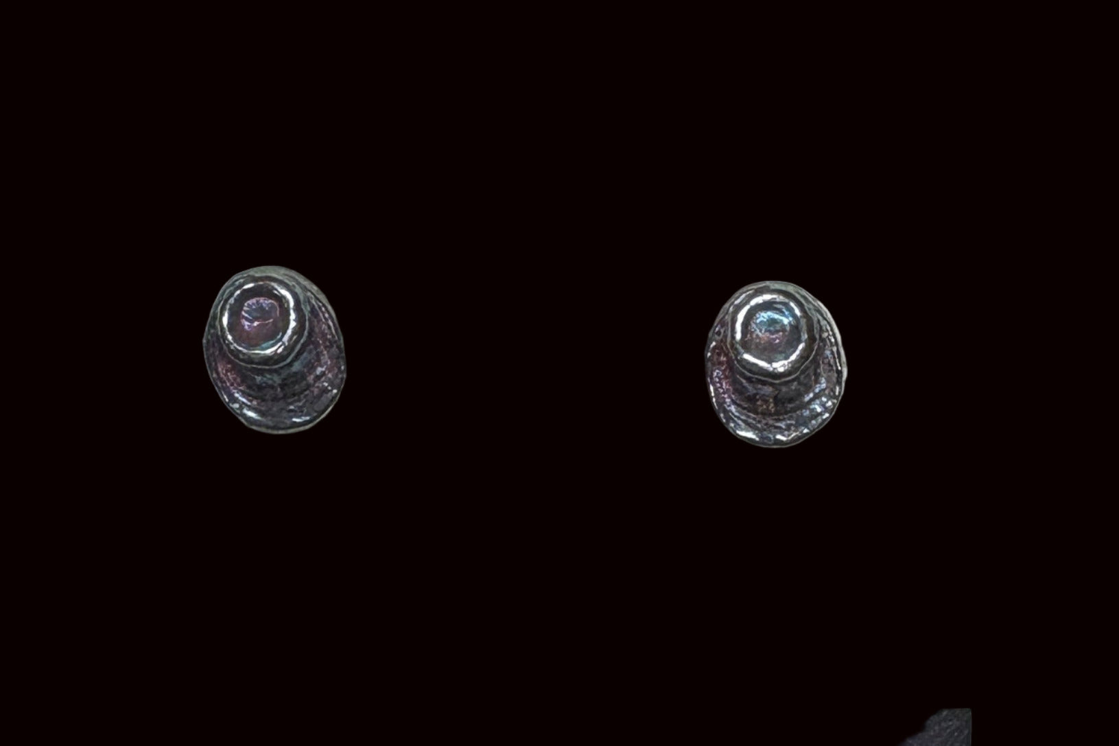 Fine Silver (.999) post earrings with a unique patina to give color. Approx. 7 x 9 mm.