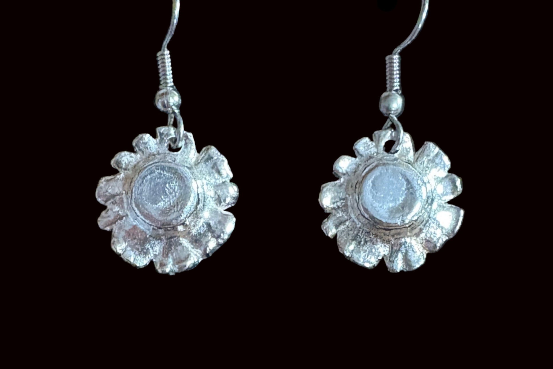 Fine Silver (.999) dangle earrings. Approx. 11mm in diameter.